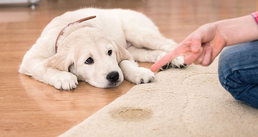 - If he urinates don’t say anything, get him outside and then clean up without him seeing you do this.