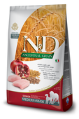 Description Complete Dog Food for All Life Stages.Farmina N&D Grain-Free Chicken Recipe is formulated to meet the nutritional levels established by the AAFCO Dog Food Nutrient Profiles for all life stages.<ul><li>95% Premium Animal Protein</ul> Ingredients Fresh free range boneless chicken, dehydrated chicken (source of glucosamine & chondroitin sulfate), potato, chicken fat (preserved with mixed tocopherols), dried whole eggs, Fresh herrings (source of glucosamine & chondroitin sulfate), dehydrated herring (source of glucosamine & chondroitin sulfate), herring oil (preserved with mixed tocopherols), fiber vegetable of peas, dried carrots, sun-cured alfalfa meal, inulin, fructooligosaccharide, yeast extract (source of mannan-oligosaccharides), dehydrated pomegranate, dehydrated apple, dehydrated spinach, psyllium seed husk, dehydrated sweet orange, dehydrated blueberry, salt, brewers dried yeast, turmeric, vitamin A supplement, vitamin D3 supplement, vitamin E supplement, ascorbic acid, niacin, calcium pantothenate, riboflavin, pyridoxine hydrochloride, thiamine mononitrate, biotin, folic acid, vitamin B12 supplement, choline chloride, beta-carotene, zinc proteinate, manganese proteinate, ferrous glycine, copper...