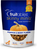 Description Fruitables Natural Dog Biscuits are bursting with flavor and have an irresistible aroma. Made with pumpkin - one of nature's great superfoods. Pumpkin contains natural sources of antioxidants, beta carotene, key vitamins and nutrients, and fiber and is low in calories. Pumpkin provides a truly amazing fresh-baked aroma in each treat. Fruitables are calorie smart so you can feel good about treating your pet. Our patent pending concept in advanced nutrition that utilizes nature's gifts of fruits and vegetables to balance palatability, calorie control and satiety in treats your pet will love. Each Fruitables Natural Dog Biscuit is under 9 calories. Our all natural formula is free of wheat, corn, soy and artificial ingredients, colors and preservatives. Ingredients Pumpkin, Oats, Pearled Barley, Potatoes, Sunflower Oil, Cane Molasses, Cinnamon, Blueberries, Natural Blueberry Flavor, Natural Vanilla Flavor, Mixed Tocopherols (to preserve freshness), Rosemary Extract, Green Tea Extract, Spearmint. Guaranteed Analysis Nutrient...