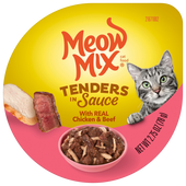Description Now known as Meow Mix Tender Favorites, this terrific cat food is still great-tasting and jam-packed with the nutrition that your cat has always pounced upon. Meow Mix Tender Favorites Real Chicken and Beef in Gravy Cat Food Cup is just one of the many lip-smacking flavors that will have your cat dashing into the kitchen the second you open the can! Made with juicy, shredded pieces of chicken and beef then mixed into a savory gravy, Meow Mix Tender Favorites Real Chicken and Beef in Gravy Cat Food Cup is an exceptional meal that your kitty will enjoy again and again!At Meow Mix, we are solely focused on the happiness of cats. We know cats are part of the family. That's why our products are developed to satisfy your cat's taste buds, while giving you the comfort of knowing that he will be happy and healthy. Ingredients Fish...