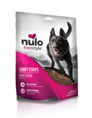 Description Sit, down, stay – good dog! Duck, sweet potatoes and plums make up this Duck with Plum Jerky Strips recipe. These functional jerky strips contain no added sugars or cane molasses because your Nulo dog deserves the best. Tear these soft treats into pieces or reward whole when your pup deserves the occasional treat!Contains No: Corn, Wheat, Soy, Artificial Preservatives, Colors or FlavoringsSINGLE ANIMAL PROTEIN75% Duck 15% Sweet Potatoes & PlumsPURE & SIMPLENo added salt, sugar, or cane molasses. PROBIOTIC ADVANTAGESupports your dog's digestive and immune health. THOUGHTFULLY SOURCEDDuck from France paired with savory plums.GREAT TASTE & TEXTURESoft & pliable strips that are easy to tear. ARTISANAL QUALITYSlow-cooked in a natural smokehouse to perfection.<iframe src='https://player.vimeo.com/video/268048571' width='640' height='360' frameborder='0' allowfullscreen></iframe> Ingredients Duck, Sweet Potatoes, Plums, Coconut Glycerin, Distilled Vinegar, Citric Acid (as preservative), Dried Bacillus coagulans Fermentation Product, Mixed Tocopherols (as preservative). Guaranteed Analysis Nutrient Guaranteed Units Crude Protein 20%...