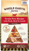 Description Whole Earth Farms Grain Free dry dog food recipes provide natural, grain free dog foods with real meat, poultry or fish that support the nutrition needs of your dog. Whole Earth Farms is a wholesome line of naturally nutritious dog food and cat food that offers all the goodness from the earth at a great value. Our Whole Earth Farms dry and wet recipes are cooked in the USA with high quality, natural ingredients that deliver complete and balanced nutrition. These natural recipes are available in both grain free dog food and cat food recipes, as well as healthy whole grain dog food and cat food recipes. Now with more high quality protein, our All-Natural ingredients help support: easier digestibility, less shedding, shinier coat, increased energy, stronger nails and healthier skin. We put in only the good and leave out the rest: no corn, no wheat, no soy, no...