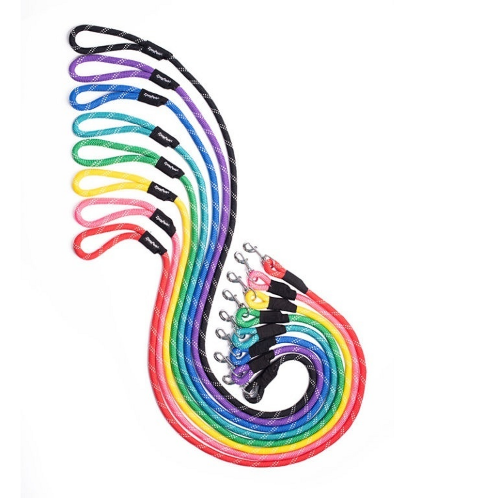 <p>Fit even for the most powerful dogs, ZippyPaws CLIMBERS Mountain Climbing Rope Dog Leash is made of real mountain climbing rope that has a tested tensile strength of 3791 lbs.Colors include• Black• Blue• Red• Yellow• Green• Pink• Purple• Teal<br><h3>Why We Love It</h3><ul><li>Made of real mountain climbing rope<li>Extra durable 2/3 inch (17 mm) rope is thicker than ordinary rope leashes<li>Exclusive woven design is comfortable to hold<li>Ultra heavy-duty bull snap can contain the most sneaky escape artists</ul><p><br><h3>About ZippyPaws</h3><p>ZippyPaws' co-founder Jen adopted an adorable golden retriever puppy in 2003. Being the friendly puppy he was, JJ quickly won the hearts of everyone he met. Some of his favorite activities include sleeping with his paws in the air, rolling in the grass, and playing with squeaky plush toys. As a business student at the University of Southern California, Jen wanted to leverage her family's 20 years' of manufacturing experience in the pet industry and her strong design background to create a boutique brand of pet products. ZippyPaws was established in 2011 and ever since we have created toys that embody JJ's best qualities: playful, colorful, and loads of fun!